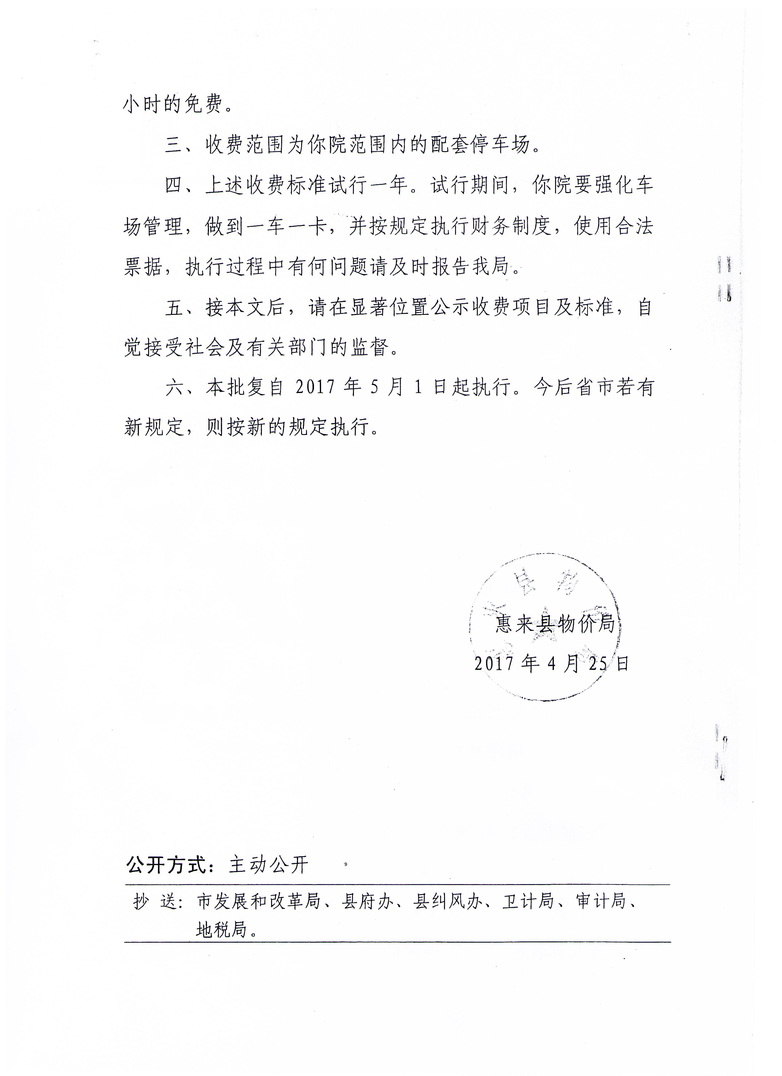 关于县人民医院停车收费问题的批复 惠价函[2017]1号 2.jpg