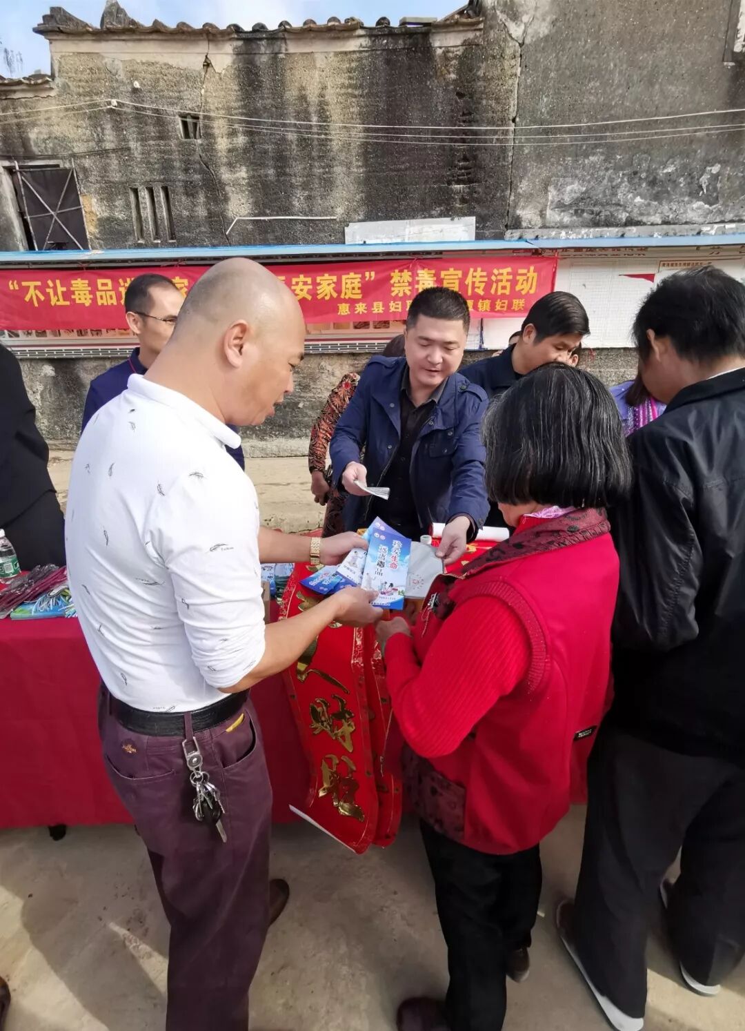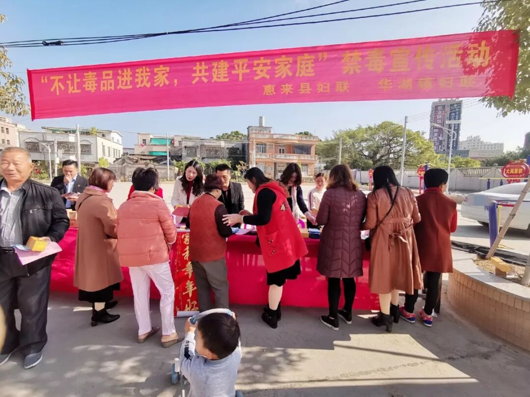 为加强毒品预防教育工作,普及禁毒法律知识,教育妇女远离毒品,发挥妇女在家庭中的特殊作用,做好家庭毒品预防教育工作。2020年1月2日、3日,惠来县妇联联合华湖镇妇联、葵潭镇妇联分别在华湖镇华谢村、葵潭镇兵营村开展“不让毒品进我家,共建平安家庭”禁毒宣传活动,打响2020年禁毒宣传活动第一枪。