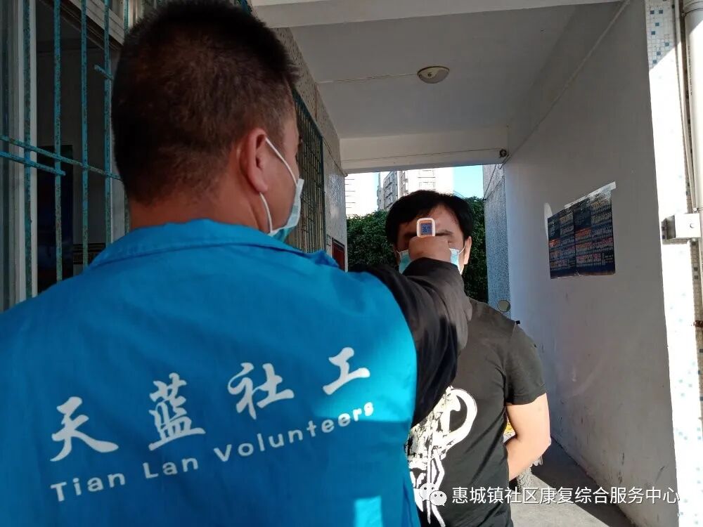新冠疫情爆发以来,天蓝惠城禁毒社工在惠城镇党委、政府的统筹安排下,积极行动,发挥“以人为本,助人自助”的社工服务精神,参与到疫情防控一线。在做好禁毒本职工作的同时,将禁毒工作与防疫工作相结合,运用专业所长,为打赢疫情防控阻击战贡献力量。 1、组织社康社戒学员观看防疫视频,送上防疫口罩 禁毒社工通过电话沟通与社区尿检面谈过程中,了解到有的社康社戒人员没有在市面上买到口罩,前来社区尿检时并无佩戴口罩,未能实现较好的自我防护。社工及时将此事反馈给惠城镇政府,通过社会资源链接,为他们筹备了医用口罩。当学员到社区进行尿检时,由社工进行体温测量与登记,组织学员观看防疫科普视频,并为没有买到口罩的学员贴心送上防疫口罩一个,嘱咐学员特殊时期不忘戒毒,也应加强自我防护,避免感染病毒。 2、入户走访为涉毒贫困家庭体温检测,传递爱心物资 为进一步做好疫情防控期间涉毒贫困家庭的关爱服务,禁毒社工通过入户走访帮教,让涉毒人员家庭在特殊时期真切感受到镇党委、政府和社会的温暖,为吸毒人员回归社会创造良好的条件。 3、落实“无缝衔接制度”,强化新出所学员禁毒与防疫意识 在防疫期间,禁毒社工继续认真做好解除强制隔离戒毒人员出所、管控、帮教等各个环节的“无缝衔接”,协助派出所民警、辖区干部、社区康复人员家属到强制隔离戒毒所为解戒人员办理出所手续,建立社区康复档案,并将禁毒工作与防疫宣传相结合,依托“钟南山院士禁毒宣传公益广告视频”与“疫情防护与口罩佩戴科普视频”,以禁毒+防疫宣传视频的形式巩固学员的戒毒决心,强化学员的自我防疫意识。