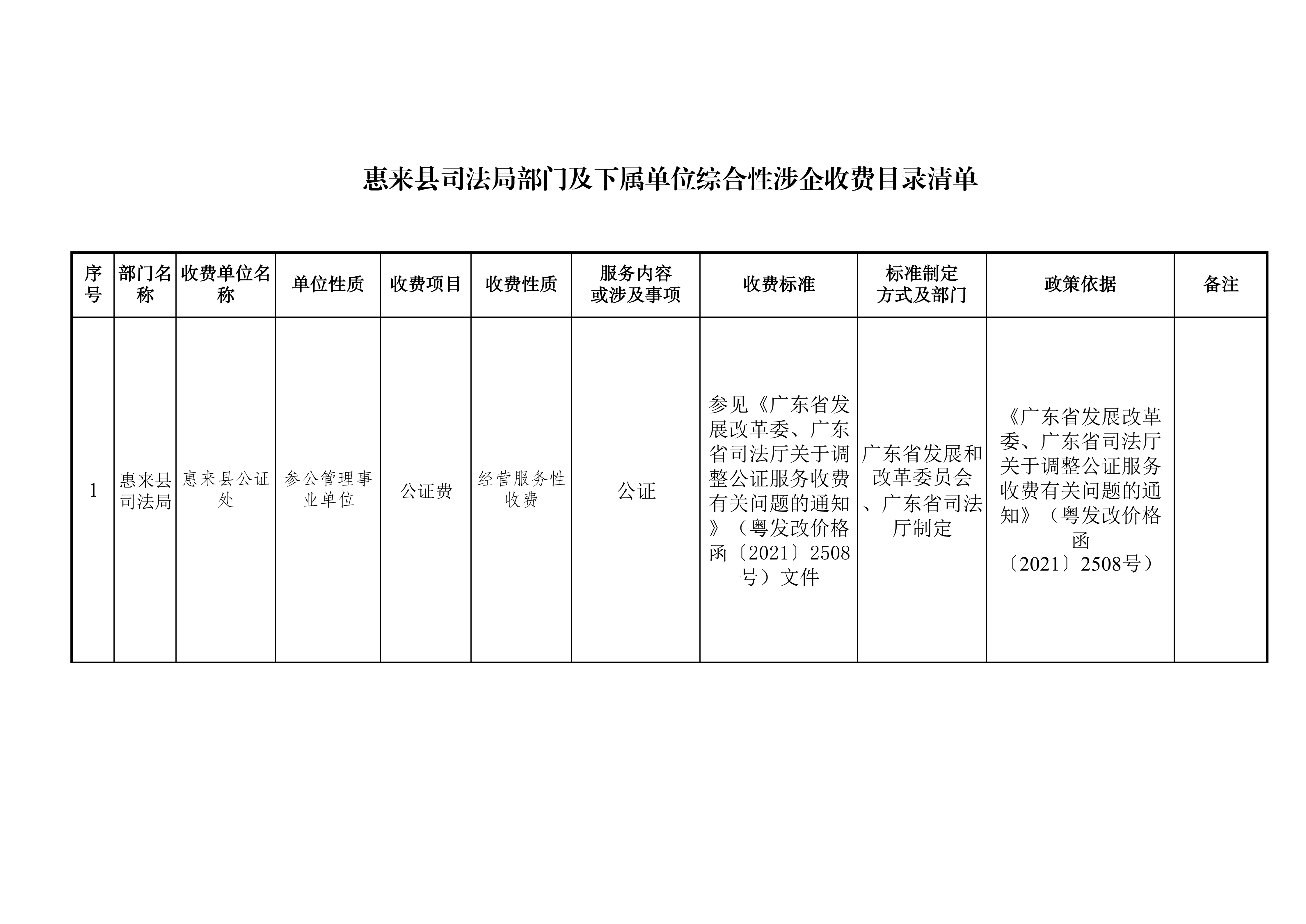 惠来县司法局部门及下属单位综合性涉企收费目录清单