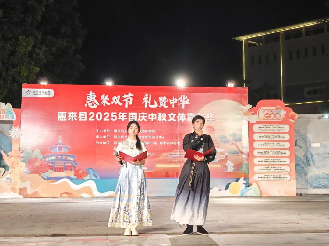 10月4日晚上,县文化广场细雨蒙蒙,一场由惠来县文化广电旅游体育局主办的惠聚双节 礼赞中华之“童心筑梦 展望未来——少儿文体艺术展演”,在此伴着细雨和掌声欢乐启幕。