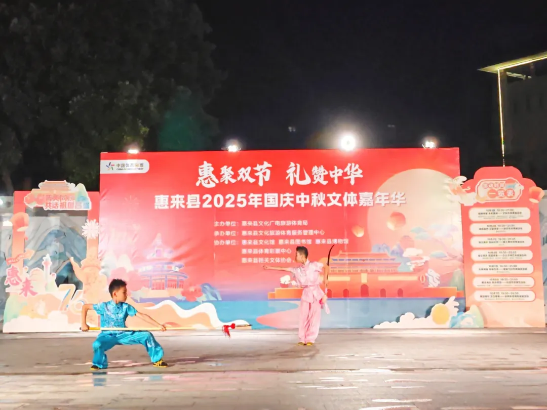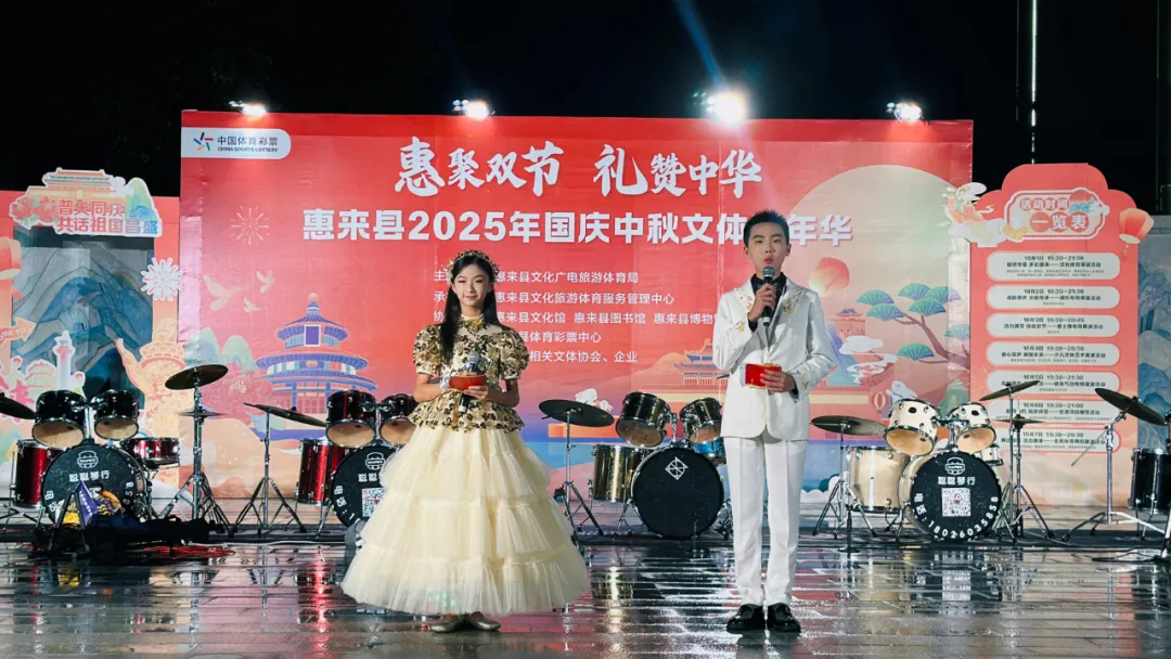 10月4日晚上,县文化广场细雨蒙蒙,一场由惠来县文化广电旅游体育局主办的惠聚双节 礼赞中华之“童心筑梦 展望未来——少儿文体艺术展演”,在此伴着细雨和掌声欢乐启幕。