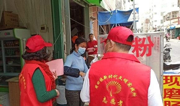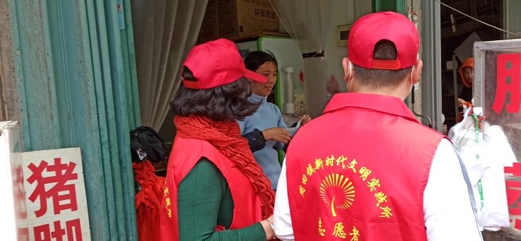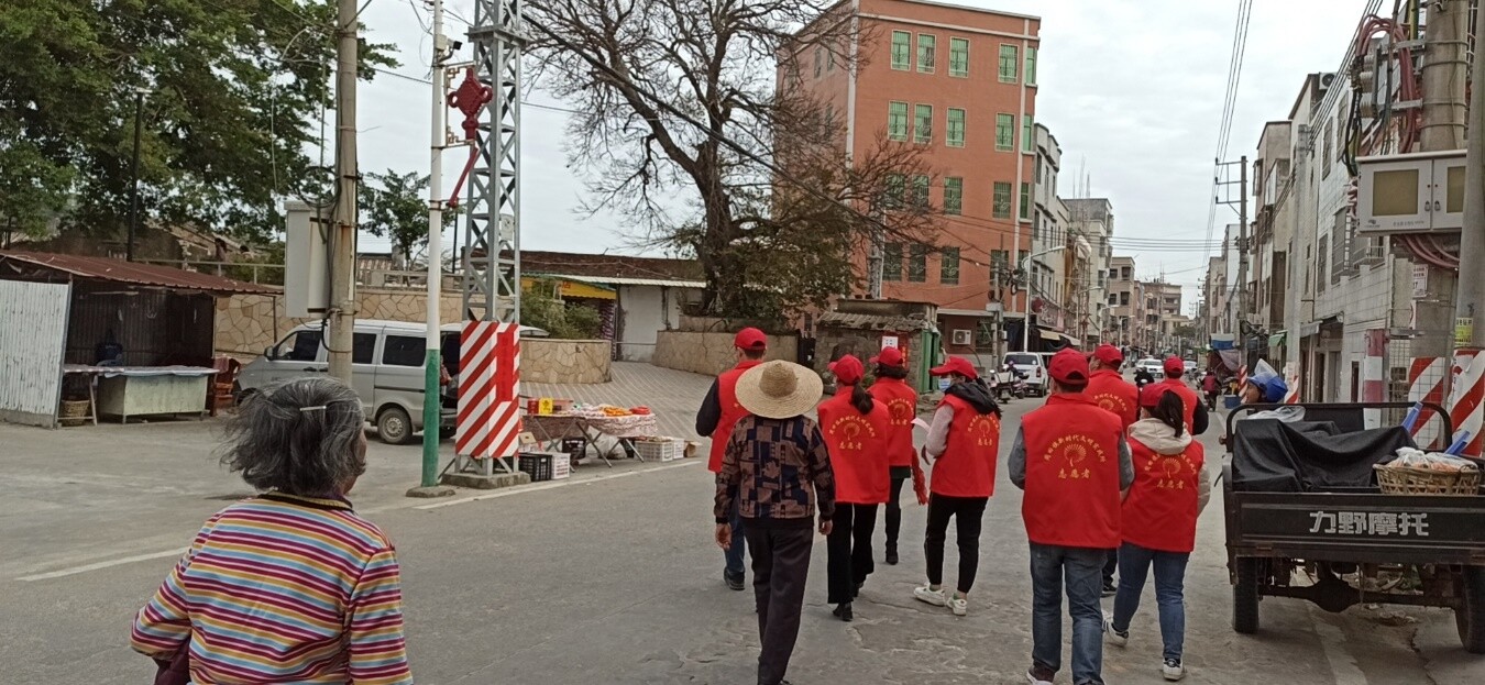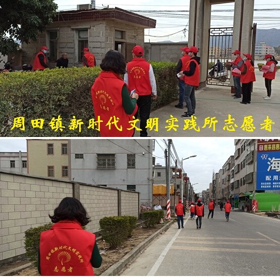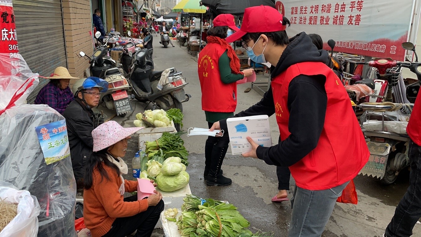 2021年1月26日,在周田镇委镇政府的指导下,周田镇新时代文明实践所、团委、宣传部门组织青年志愿者30人,由宣传委员、团委负责人带头,在进入前湖村市场的路上和市场中心,“走街串铺”开展疫情防控志愿服务活动。