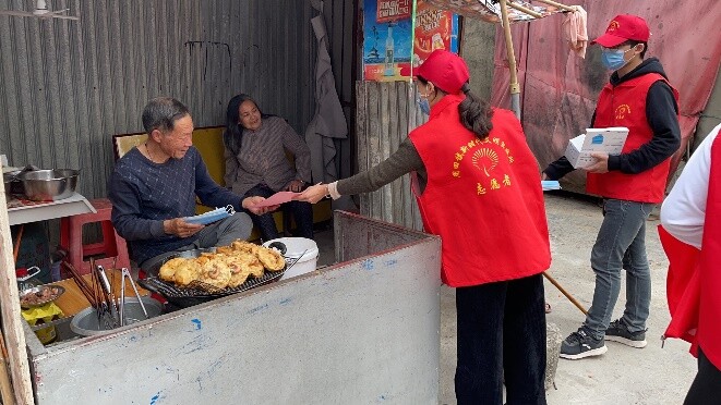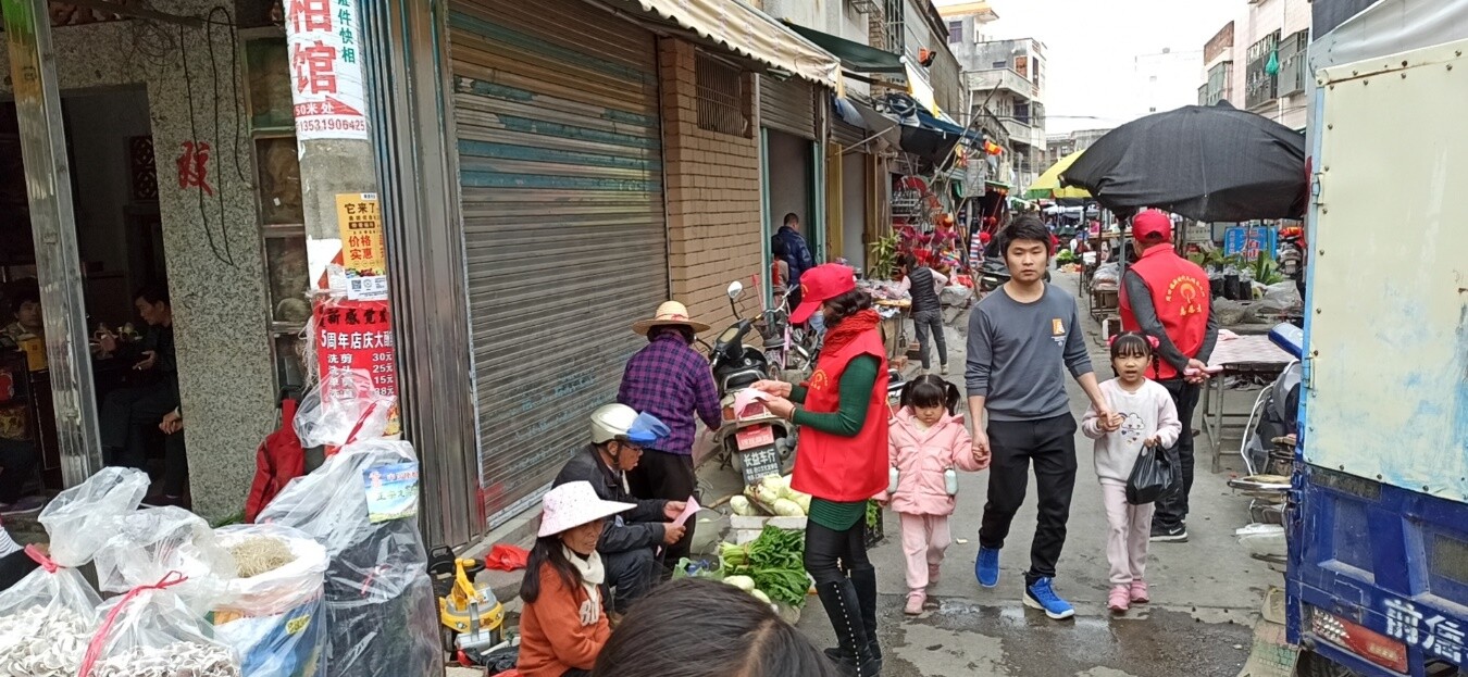 按照计划,青年志愿者从周田镇人民政府大门口集合出发,在进入前湖村市场的道路摊贩、快递物流点、饮食店铺、百货商场,至到农贸市场中心范围内的铺面、菜肉摊点等多个地方,开展环境卫生温馨提醒、疫情防控倡议书宣传、发放一次性卫生口罩、指导戴好口罩等多种形式的志愿服务活动。