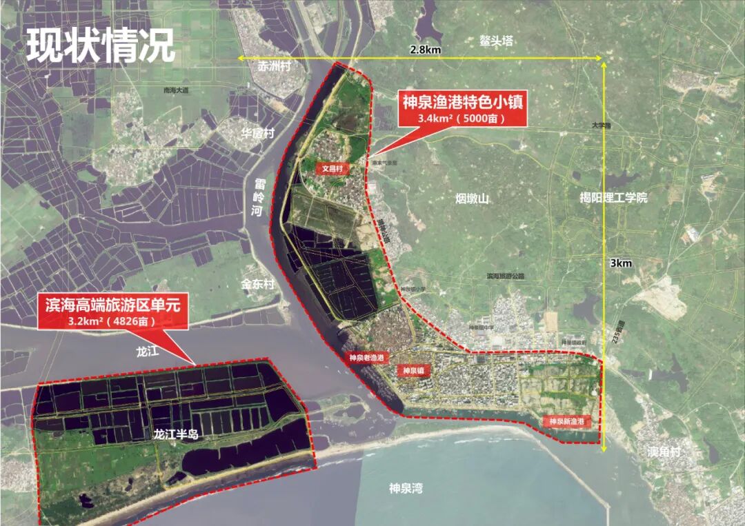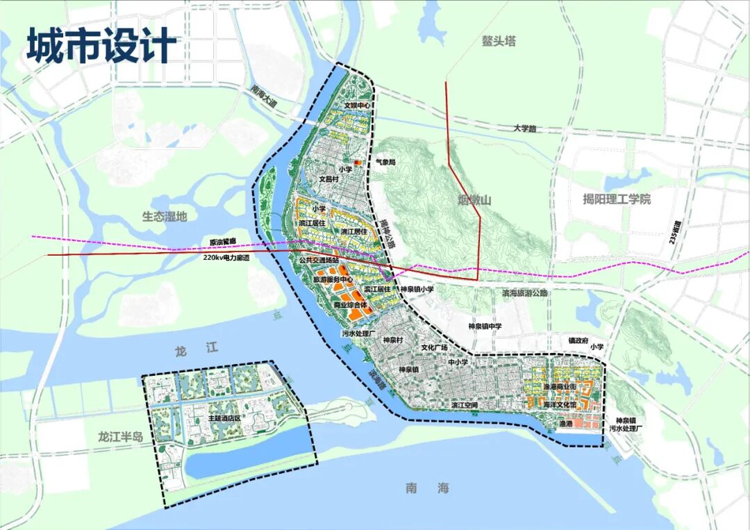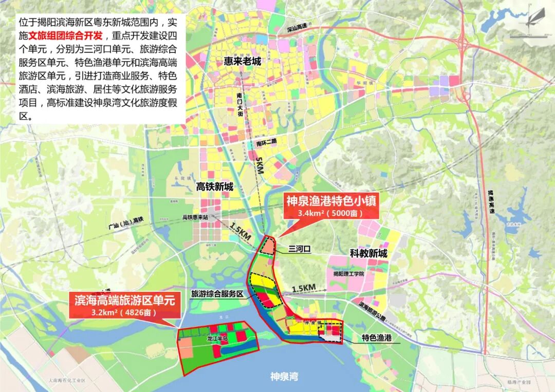 揭阳滨海新区,具有空前的政策优势、突出的区位优势、显著的产业优势和良好的开发态势。去年以来,揭阳市聚焦“一城两园”加快推进揭阳滨海新区开发建设,粤东新城定位为粤东城市群新城市中心,近期划定了7个重点建设区,其中位于粤东新城南部的粤东新城神泉湾文旅片区,依托优质的滨海河口资源和海滩条件,打造高品质神泉湾文化旅游度假区,带动区域产、城、景高品质发展。