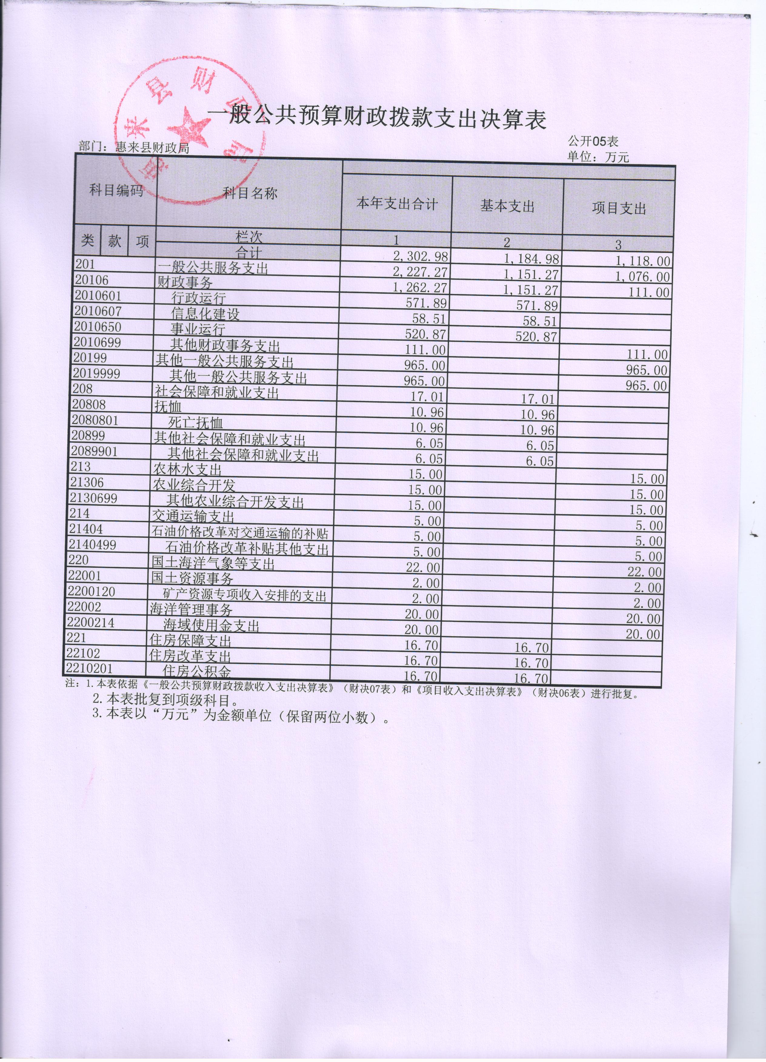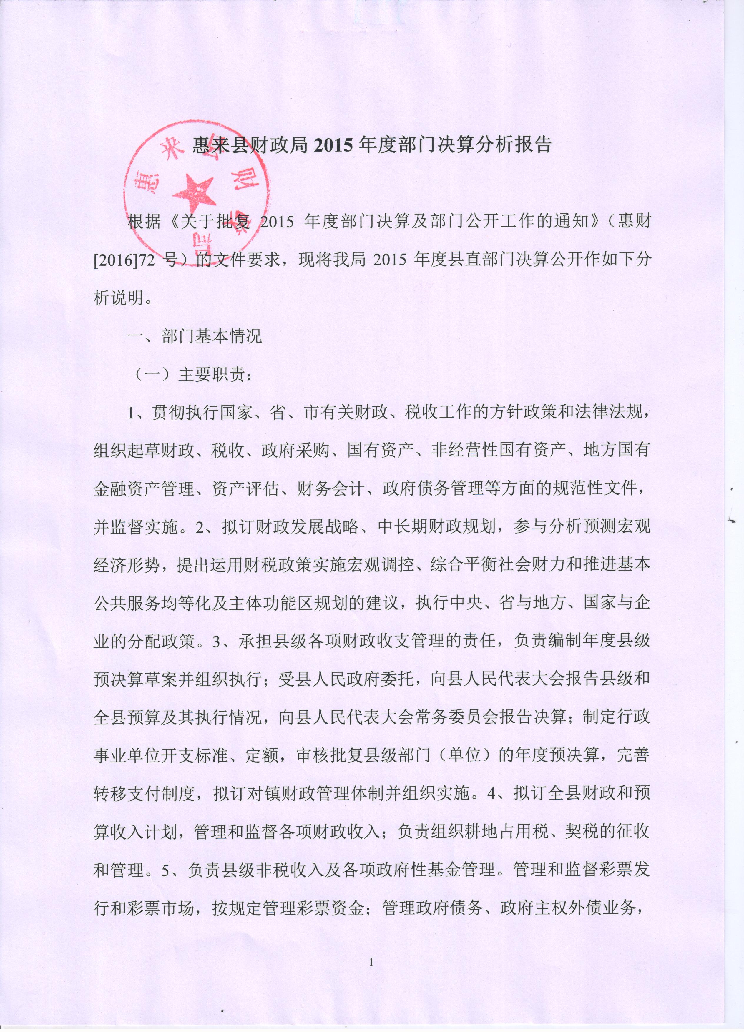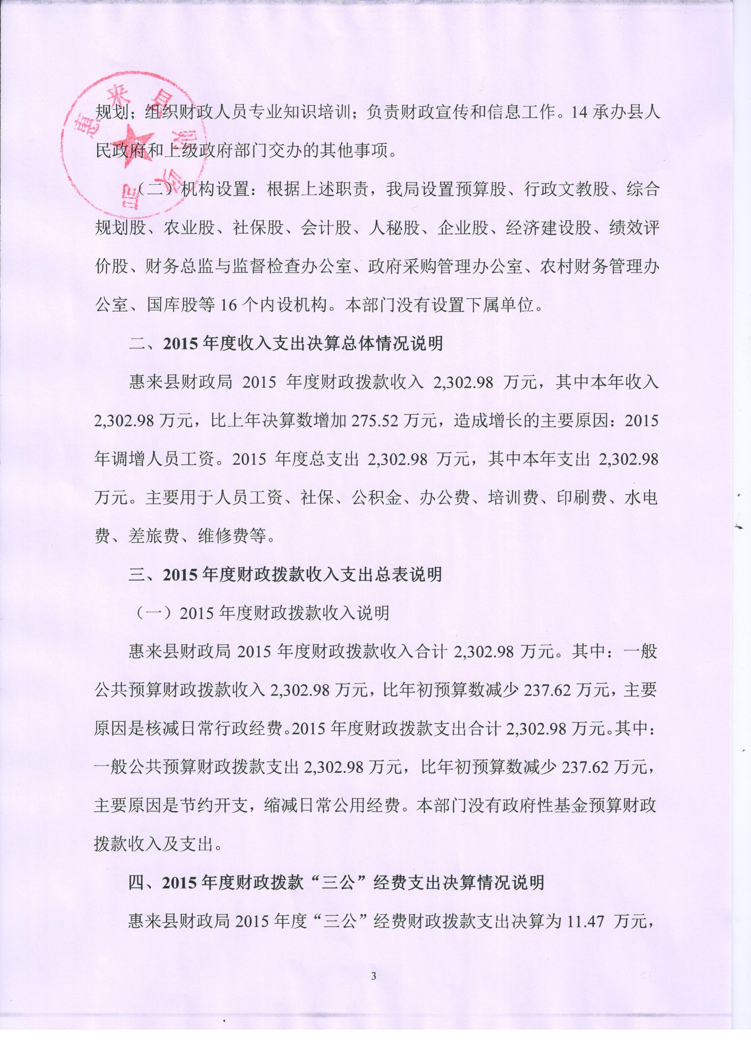 惠来县财政局(本级)2015年度决算公开