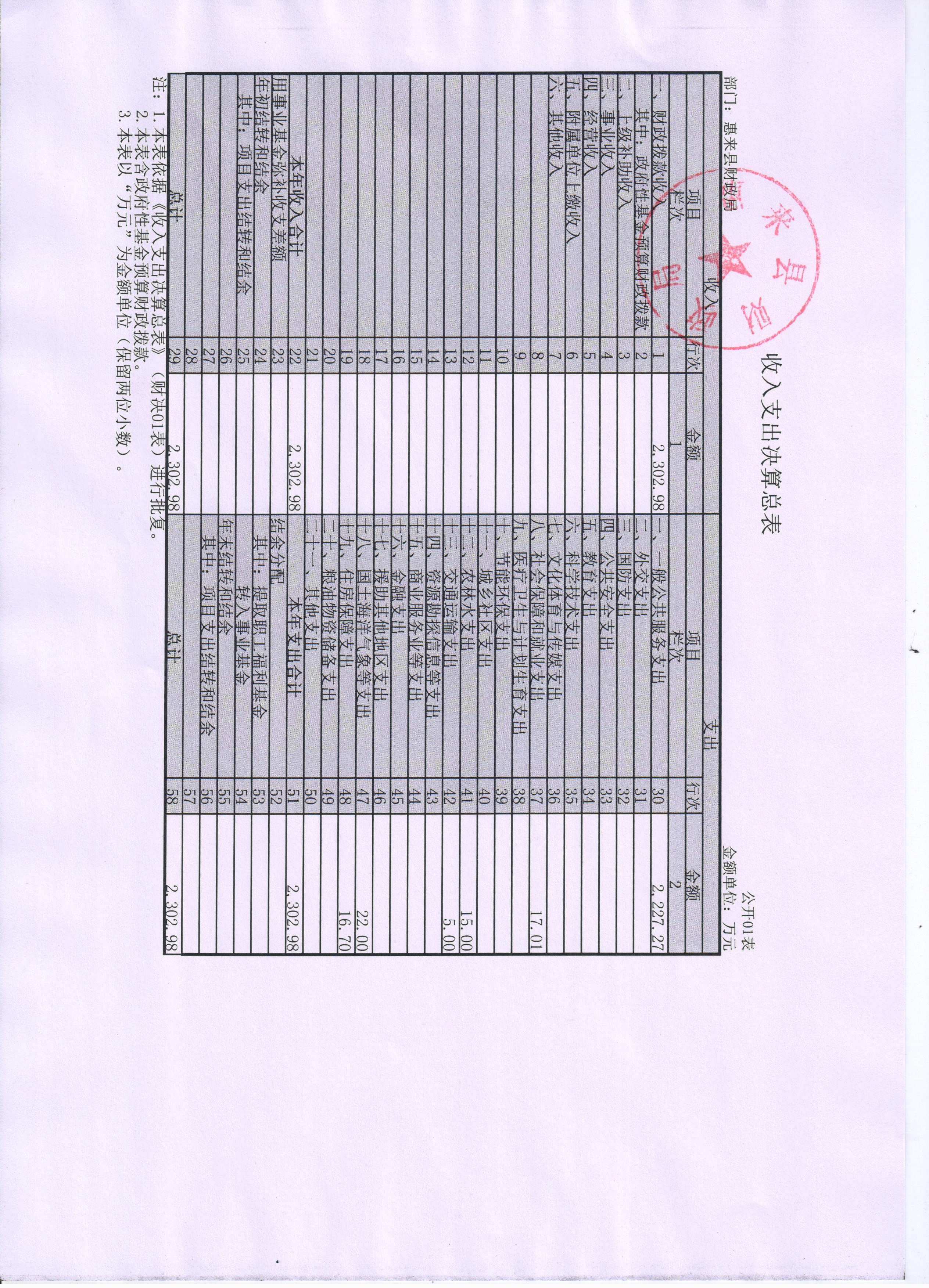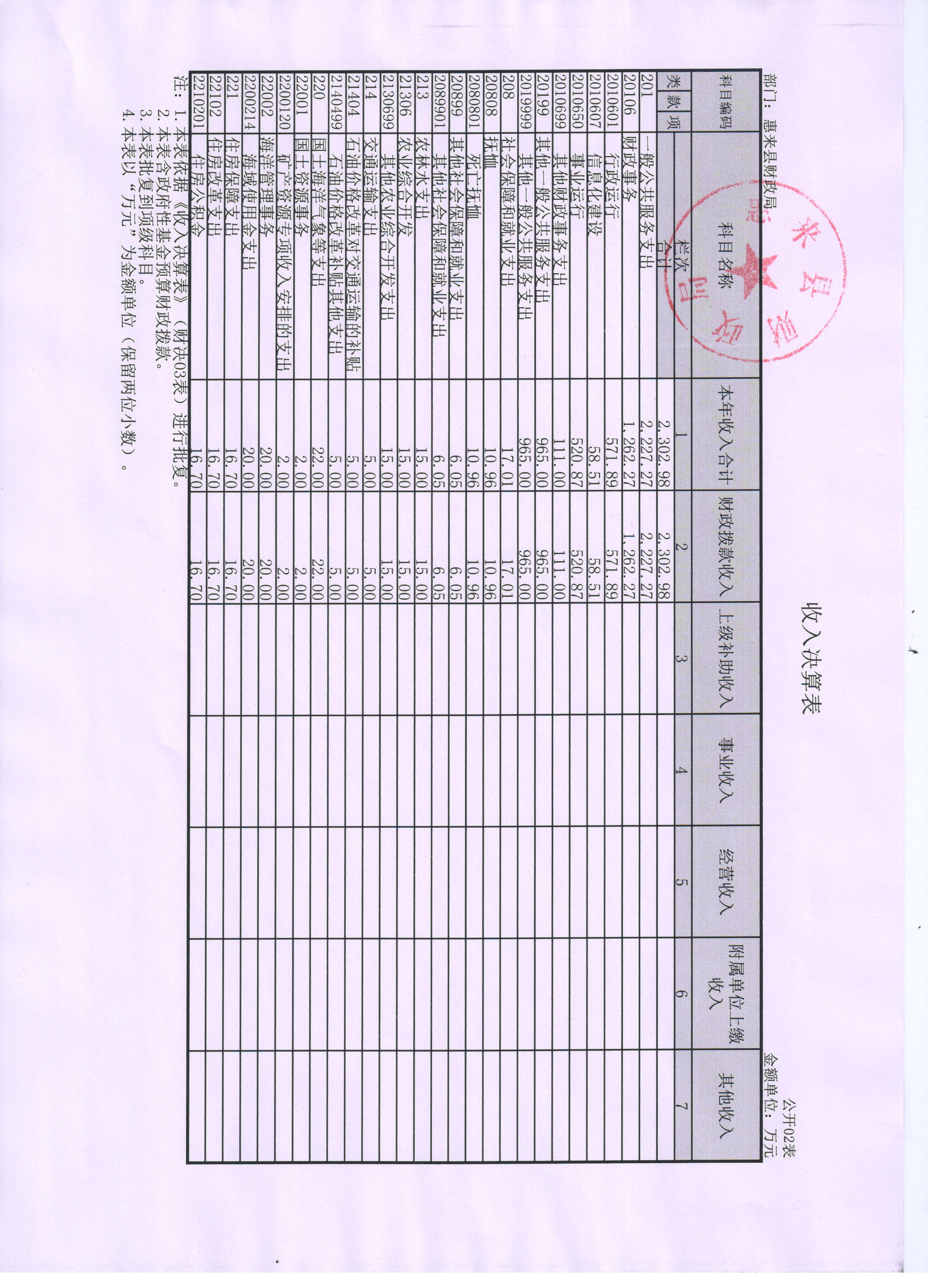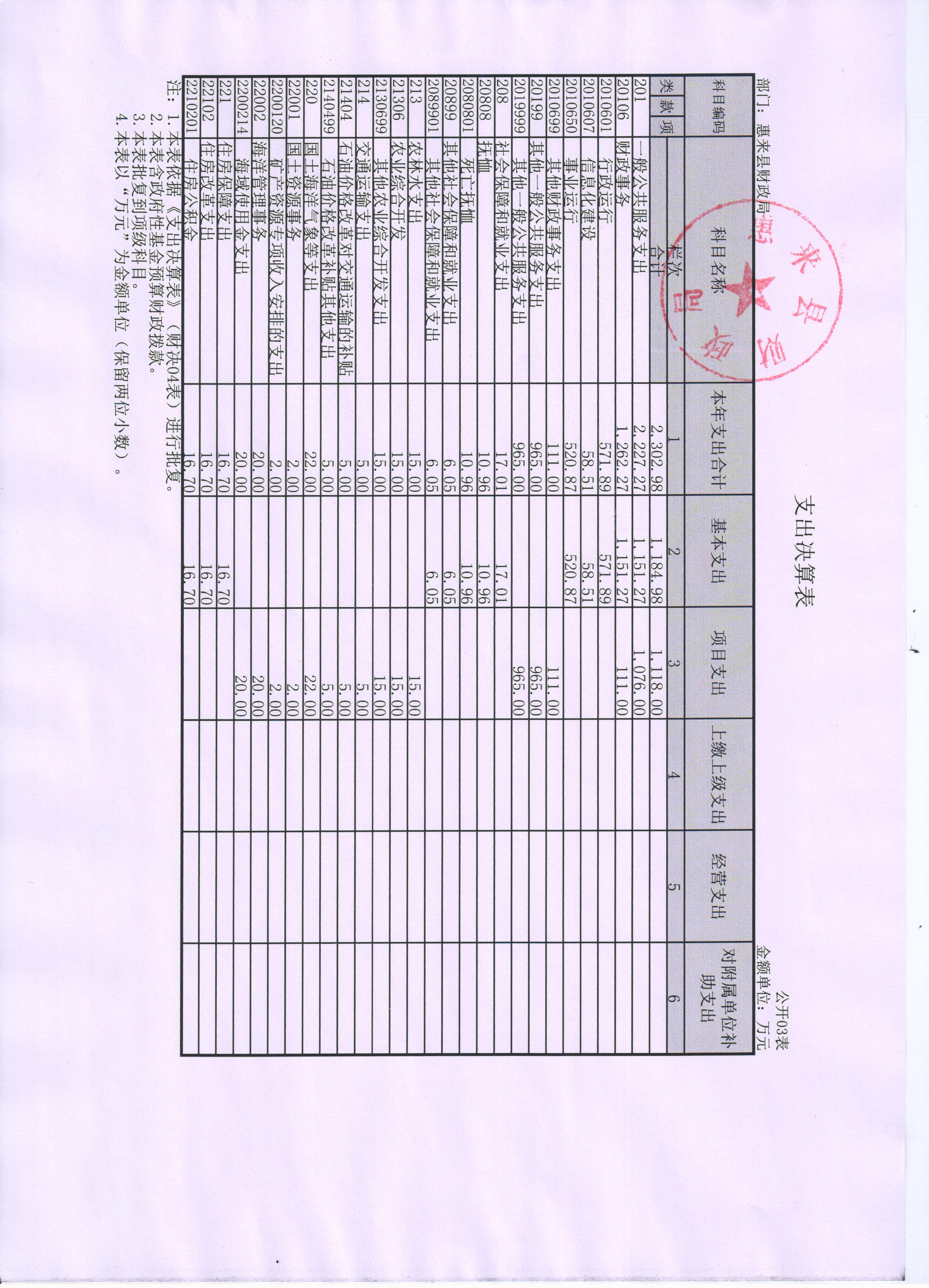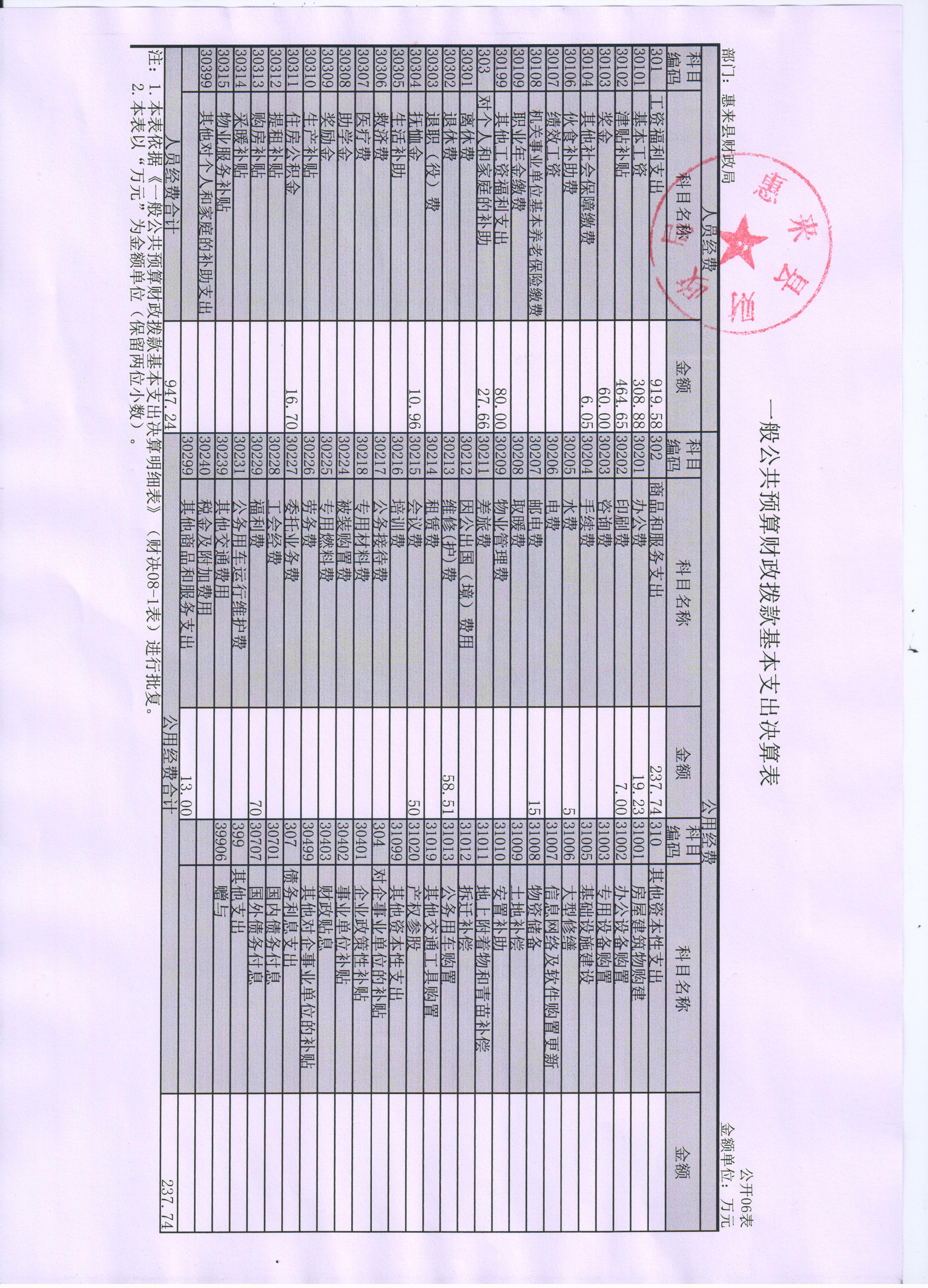 惠来县财政局(本级)2015年度决算公开